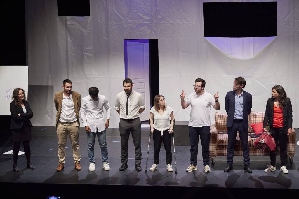 Intégrer la Compagnie Tous en Scène, c’est faire le choix de s’ouvrir aux autres, et en cela d’en découvrir davantage sur soi. Comme le dit la devise de la Comédie-Française, Simul et Singulis : être ensemble et soi-même. C’est donc avec un projet de groupe que nous vous invitons à vous découvrir vous même. Ces cours de théâtre vous permettront de travailler sur votre attitude en public, votre personnalité, le lien social avec les autres, mais aussi de nombreux éléments indispensables à la pratique théâtrale : la voix, le corps, l’occupation de l’espace, l’improvisation, la mémoire et la création d’un ou de plusieurs personnages.